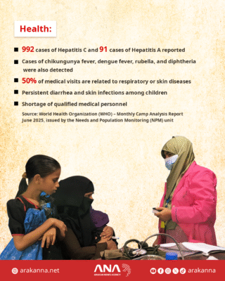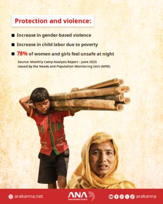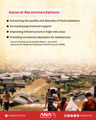 A comprehensive overview of the conditions of Rohingya refugees in Bangladesh camps in terms of food security, shelter, infrastructure, health, education, water, and sanitation.