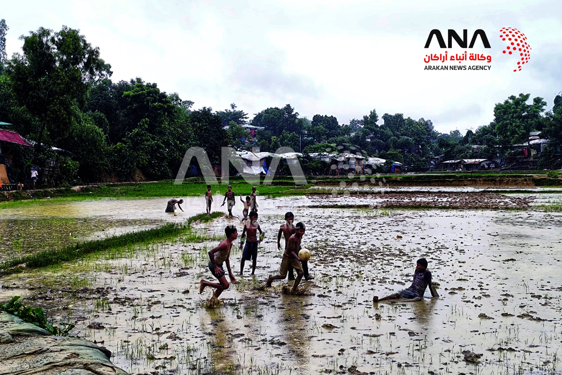 Rohingya boys in refugee camps in Bangladesh make it a daily routine to play football on open ground, using a ball and stones to mark the goalposts creating moments of happiness in the midst of harsh displacement conditions.