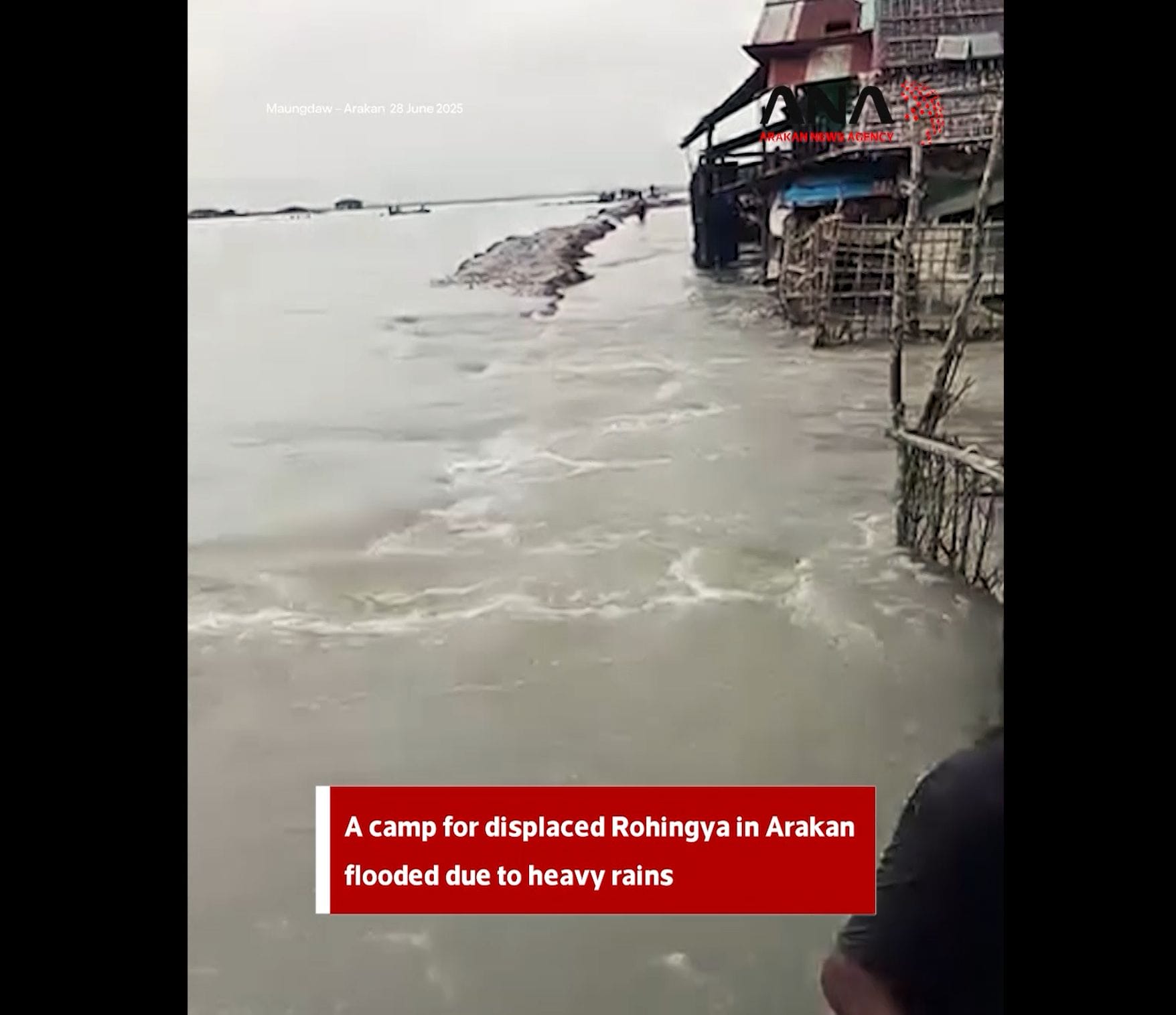 A camp for displaced Rohingya in Arakan flooded due to heavy rains
