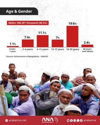 An infographic showing the situation and statistics of Rohingya refugees in the camps of Bangladesh until October 31, according to the figures issued by the Government of Bangladesh and the United Nations High Commissioner for Refugees (UNHCR).